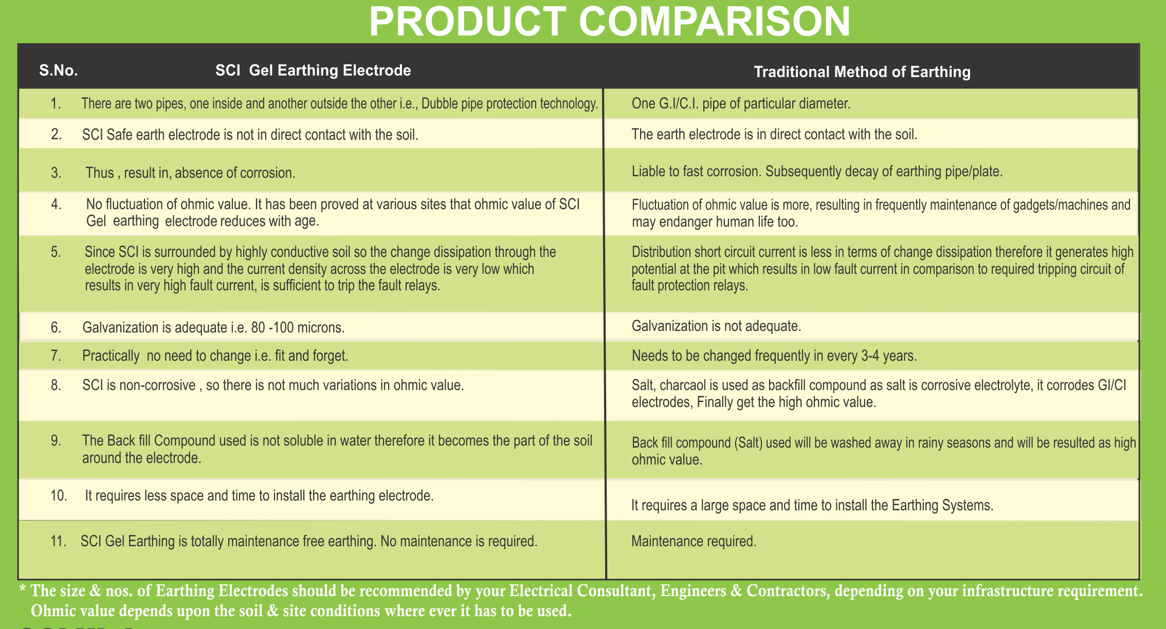 - Longer service life than conventional earthing systems
